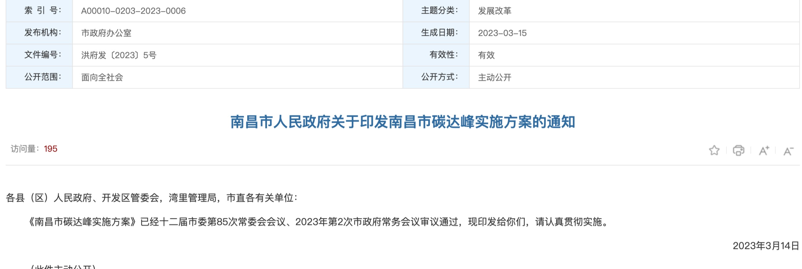 氫啟未來網獲悉,近日,南昌市人民政府發布關于印發南昌市碳達峰實施方案的通知。