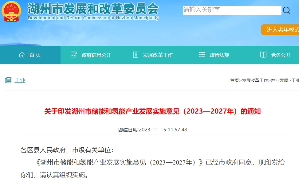 氫啟未來網獲悉,近日,為深入實施碳達峰、碳中和行動,持續激發儲能和氫能產業高質量發展新動能,著力打造新能源產業發展與應用新優勢,湖州市發展和改革委員會、湖州市經濟和信息化局、湖州市科學技術局、湖州市財政局、湖州市住房和城鄉建設局、湖州市交通運輸局聯合印發《湖州市儲能和氫能產業發展實施意見(2023-2027年)》。