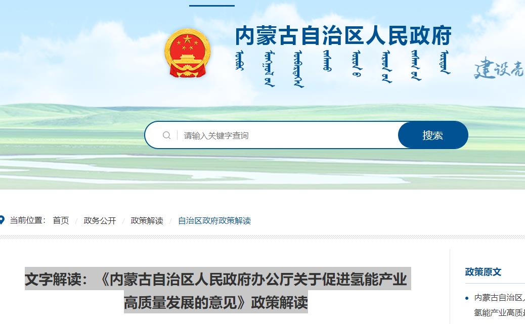 文字解讀:《內蒙古自治區人民政府辦公廳關于促進氫能產業高質量發展的意見》政策解讀