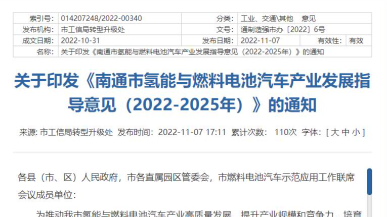 氫能總產(chǎn)值突破200億元!《南通市氫能與燃料電池汽車產(chǎn)業(yè)發(fā)展指導(dǎo)意見(2022-2025年)》發(fā)布