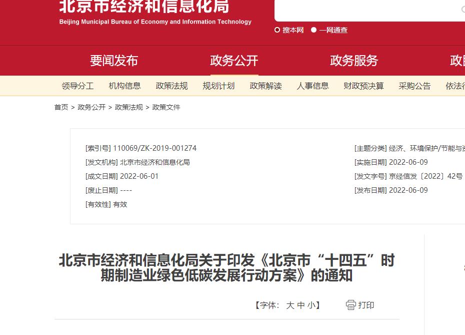 氫啟未來網(wǎng)6月20日消息,近日北京市經(jīng)濟(jì)和信息化局印發(fā)《北京市“十四五”時期制造業(yè)綠色低碳發(fā)展行動方案》