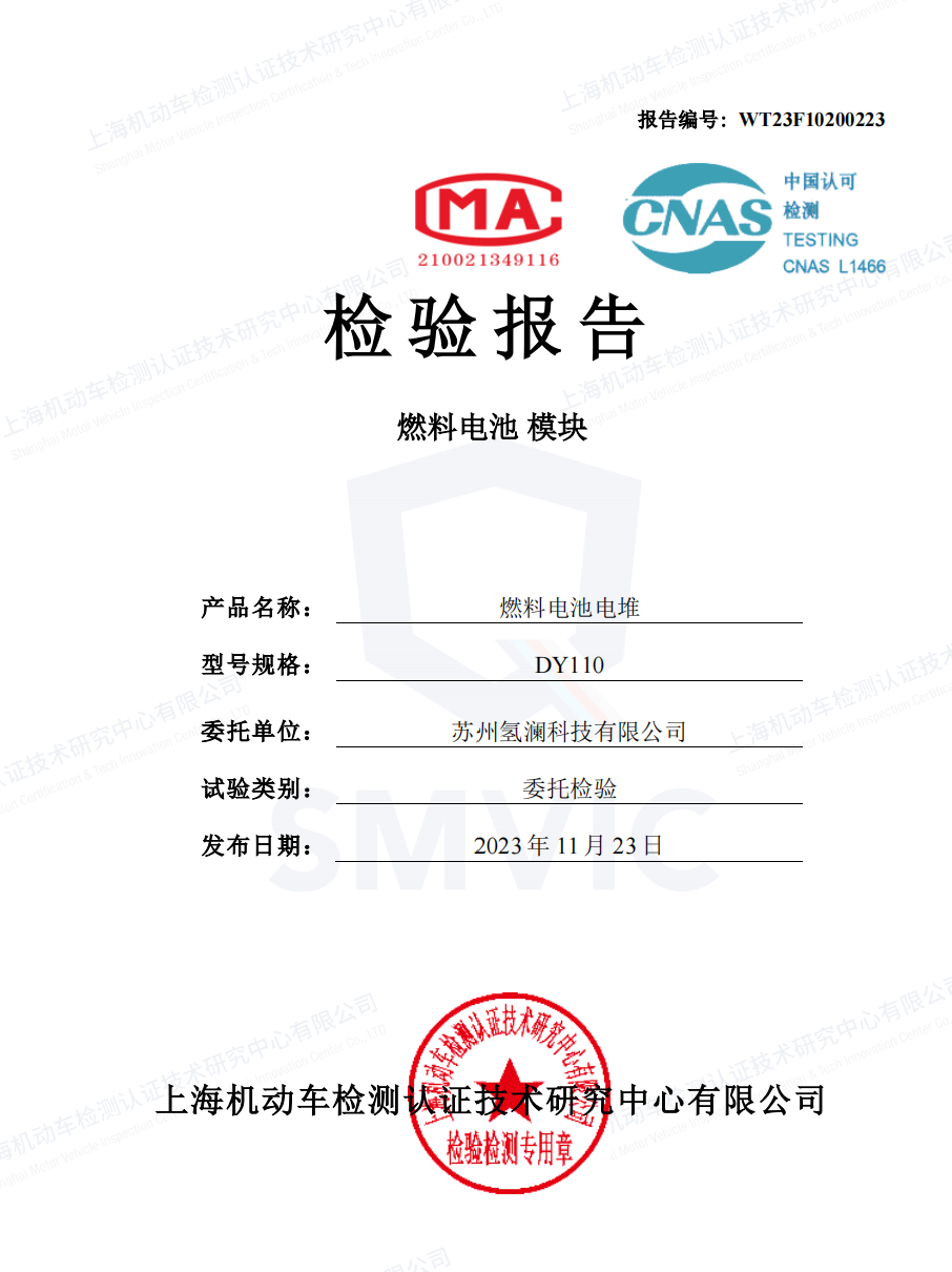 氫瀾科技的大功率金屬電堆性能參數認證成果