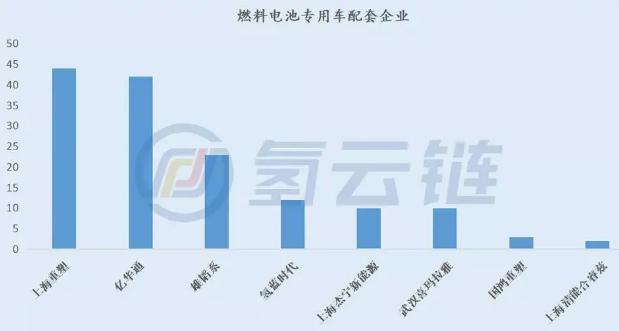 從燃料電池汽車系統配套來看,此次共有8家燃料電池系統商企業為其配套。其中上海重塑在系統配套數量44輛排名第一,緊追其后的億華通系也以40輛,在系統裝機量上僅略少于上海重塑,排名第二;雄韜氫雄系以23輛排名第三;深圳氫藍時代以12輛排名第四;上海杰寧新能源與武漢喜瑪拉雅均有10輛專用車配套,并列第五;國鴻重塑和上海清能合睿茲也分別配套3輛和2輛,排名緊隨其后。