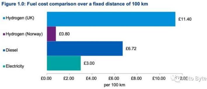 加利福尼亞能源委員會的一項(xiàng)研究估計(jì),到2030年,每公斤氫能的成本可以從14—18美元降低到6.6—8.25美元,與現(xiàn)在的柴油價(jià)格相當(dāng)。