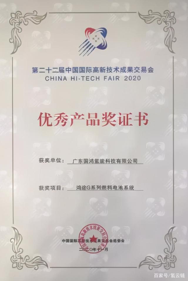 圖6 國鴻氫能獲高交會“優秀產品獎”