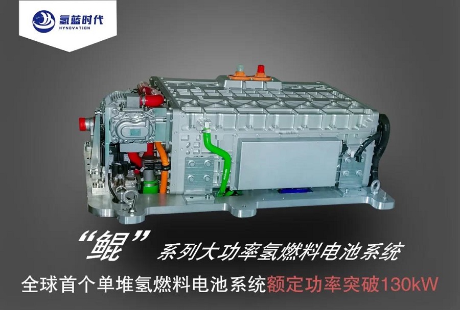氫藍時代表示,這是迄今為止通過國家強檢中心認證過的最大功率的氫燃料電池系統。并且,該系統在全球范圍內為首次實現“單堆氫燃料電池系統”額定功率突破130kW!