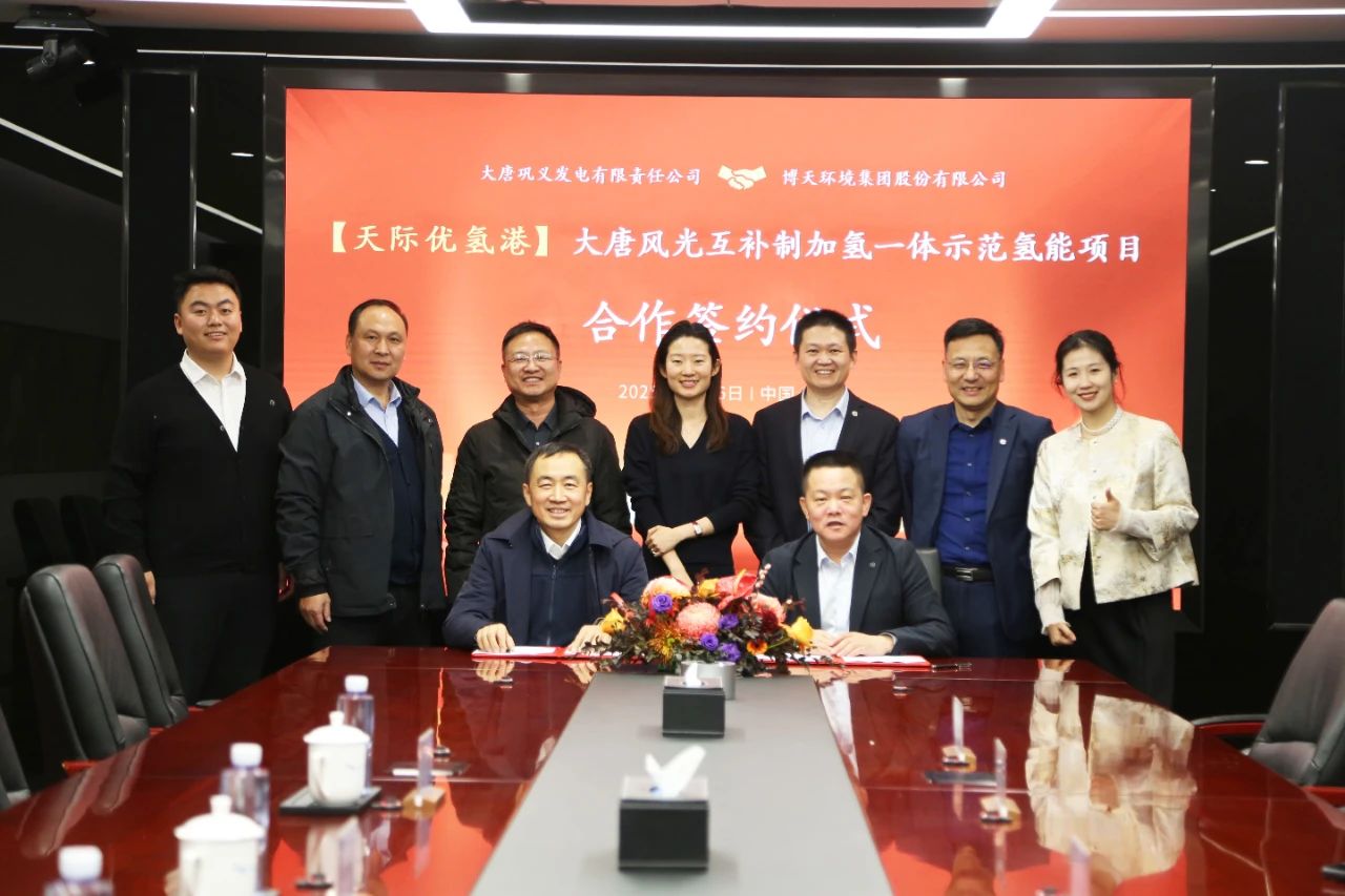 1月20日,博天環境集團股份有限公司(以下簡稱“博天環境”)與大唐鞏義發電有限責任公司(以下簡稱“大唐集團鞏義公司”)簽署戰略合作協議,就【天際優氫港】大唐風光互補制加氫一體示范氫能項目展開合作,大唐集團鞏義公司黨委書記、董事長沈洪波,博天環境集團董事長兼總裁李璐等人共同出席并進行現場座談。