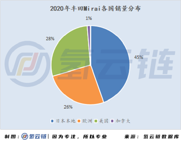 從2020年月度數據看,Mirai在日本本國和在海外的銷量分別為789和981輛。下半年的銷量明顯好于上半年,12月是全年的銷售高峰,達到了527輛。海外是豐田Mirai的主要要銷售地區。
