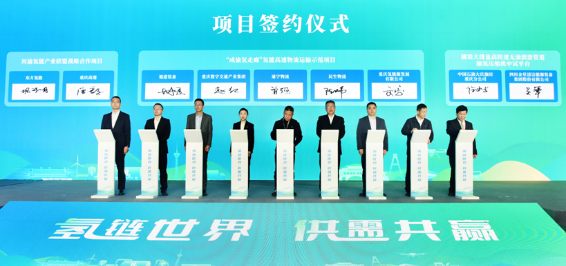 本次儀式上,“攀西雅成”與“成德綿廣”兩條綠色氫路正式貫通,此舉標志著四川向南、向北的氫能運輸大通道全面打通,全省氫能骨干網絡初步成型。活動期間還舉行了項目簽約儀式,成都、攀枝花、自貢等市均成功簽約產業鏈項目。
