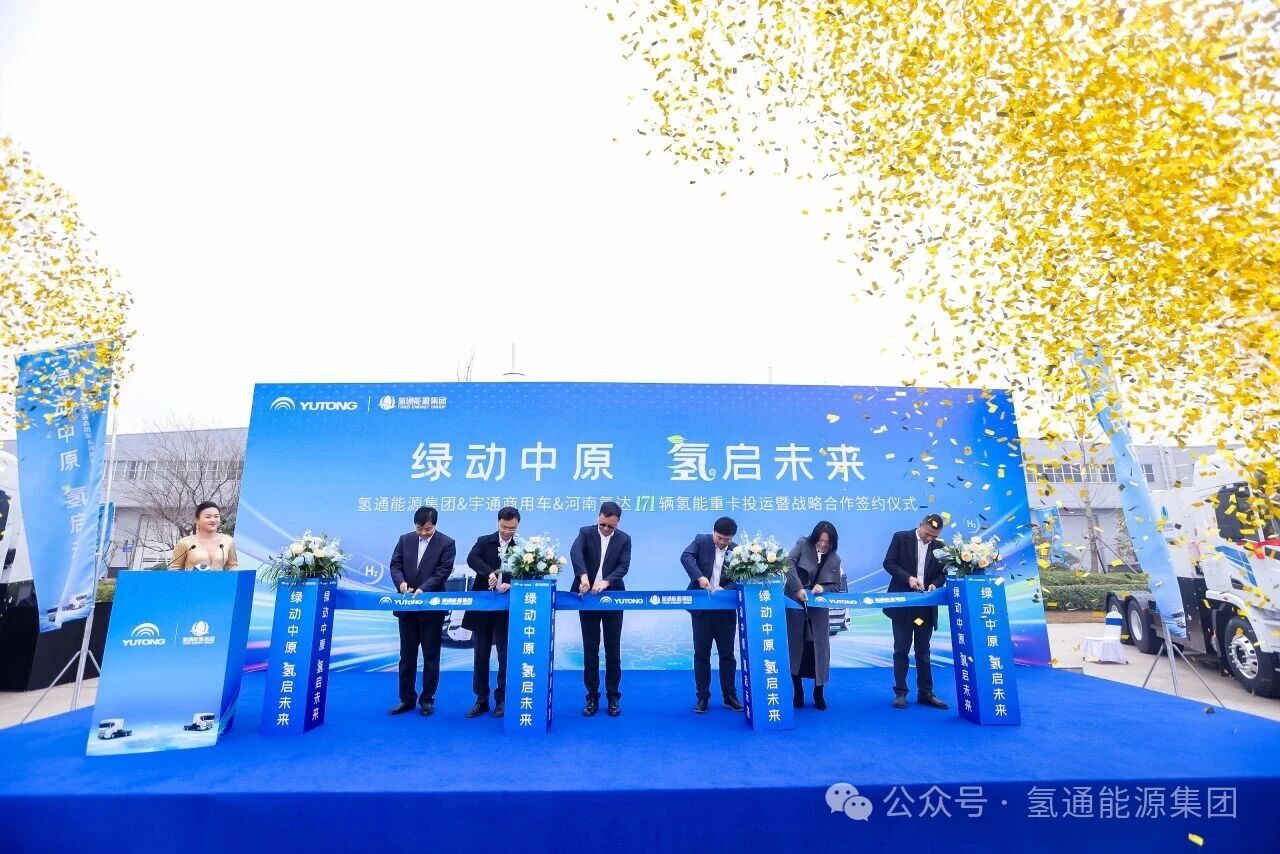 3月13日,氫通能源集團、宇通商用車與河南氫達171輛氫能重卡投運暨戰略合作簽約儀式在鄭州隆重舉行。