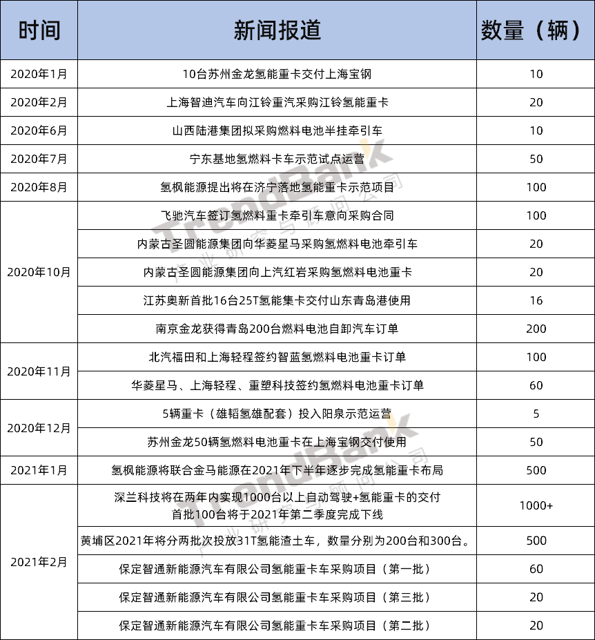 據勢銀能鏈統計,2020年至今,全國公開招標與新聞報道涉及氫能重卡已超2500輛。