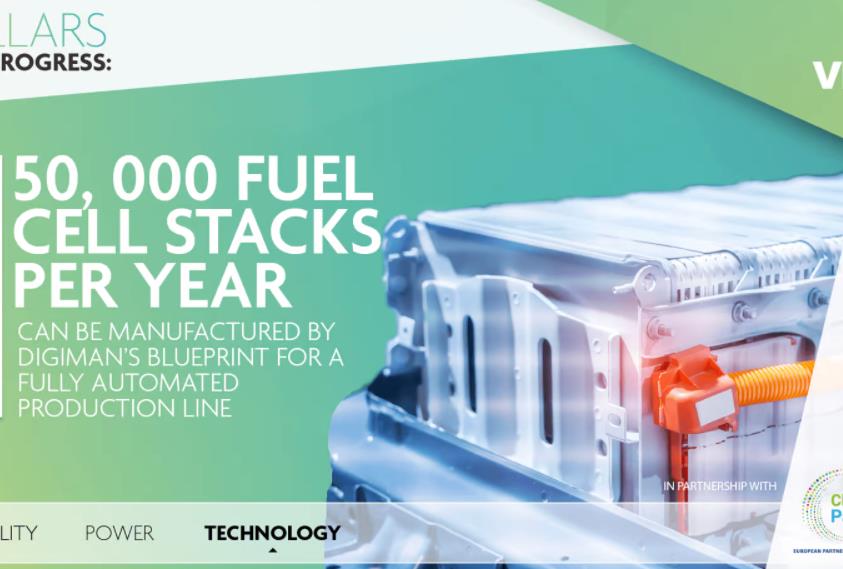 DIGIMAN和Fit-4-Amanda項目提高了制造過程的自動化程度,簡化了燃料電池堆部件的設計。DIGIMAN將質子交換膜(PEM)燃料電池生產線從半自動化轉變為全自動化。由DIGIMAN開發的燃料電池組裝生產線藍圖允許生產規模擴大到每年50,0 00個燃料電池堆。該項目將設計的制造準備狀態(MRL)提升到第六級,即生產前階段。與此同時,飛騰-4-阿曼達財團建造了一臺可擴展的大規模制造機器。