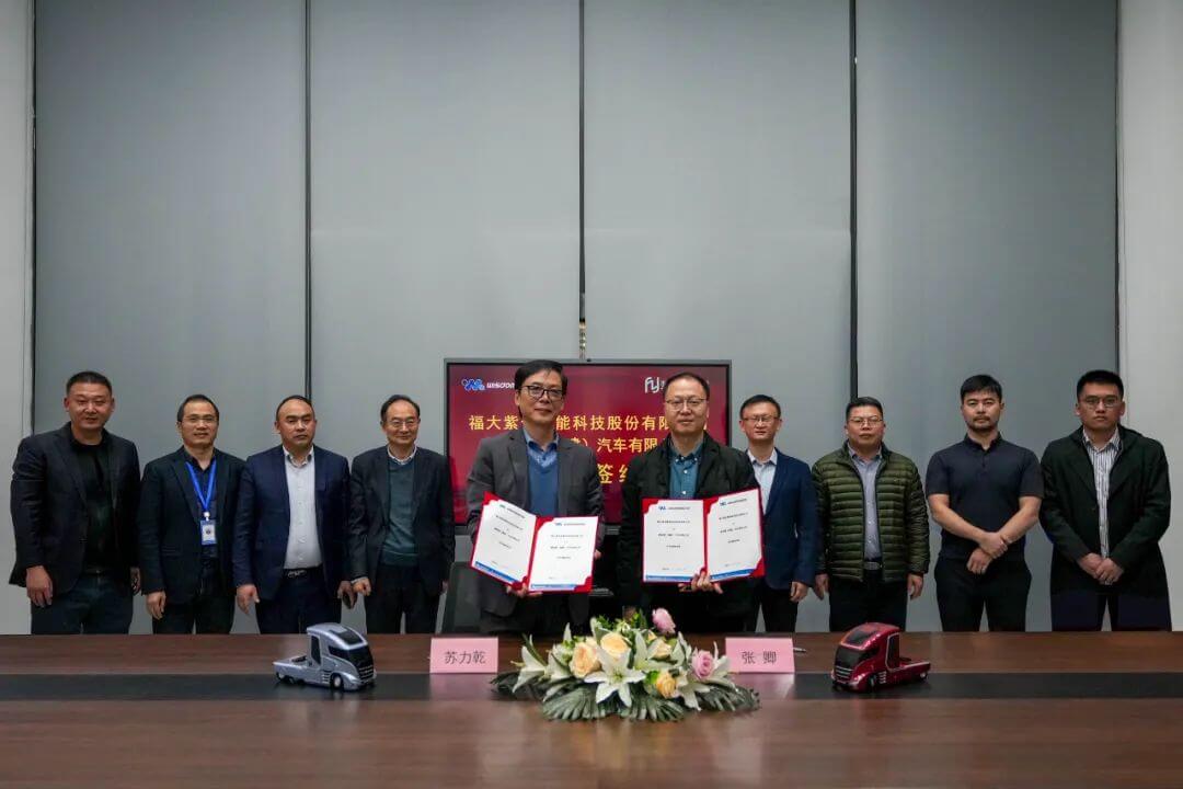 2023 年12月18日,威馳騰(福建)汽車有限公司(簡(jiǎn)稱“威馳騰”)與福大紫金氫能科技股份有限公司(簡(jiǎn)稱“福大紫金”)在福建漳州共同簽署一項(xiàng)具有里程碑意義的戰(zhàn)略合作協(xié)議。福大紫金總經(jīng)理張卿,威馳騰創(chuàng)始人兼總裁蘇力乾攜公司領(lǐng)導(dǎo)、技術(shù)高管等出席見證了簽約儀式。