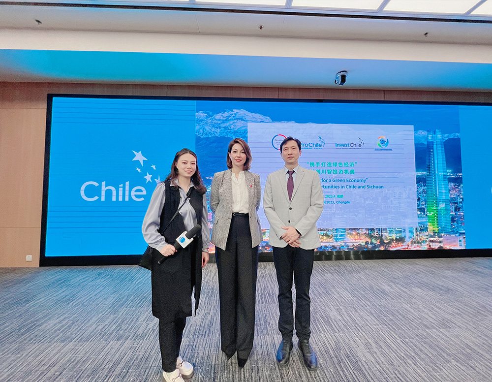 基于此,2023年4月12日,智利駐成都總領(lǐng)館、智利出口促進(jìn)總局、四川省民間組織國(guó)際交流促進(jìn)會(huì)聯(lián)合主辦了“攜手打造綠色經(jīng)濟(jì)—共創(chuàng)川智投資機(jī)遇研討會(huì)”,與會(huì)嘉賓圍繞深化智利與四川的交流合作,共同挖掘雙方新的合作渠道、探討新的合作方式、謀劃新的合作平臺(tái)等進(jìn)行了深入交流,四川省外事辦公室到場(chǎng)指導(dǎo)。