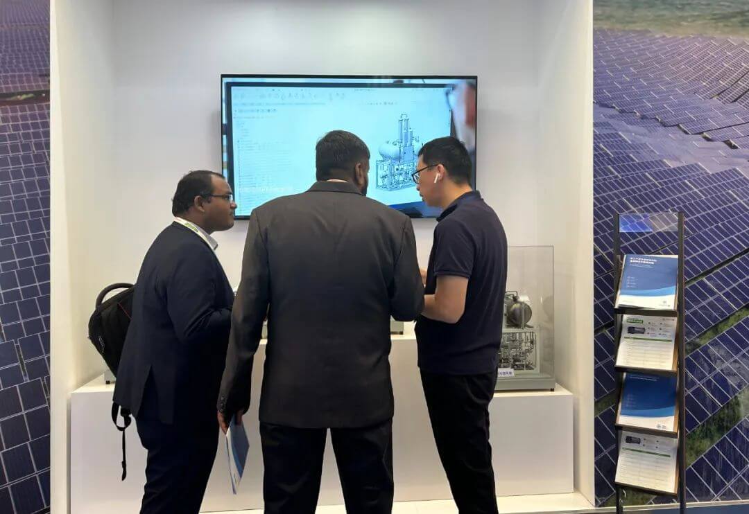 展會期間,眾多行業專家參觀了天合元氫展臺,并作深入交流。他們表示,經濟和社會發展需要全面、深度的脫碳,氫能因其得天獨厚的優勢,成為新的發展方向。光伏與氫能的結合,不僅能夠有效解決可再生能源電力的存儲和使用,更重要的是氫能產業也可以借此良機實現脫碳成為綠色氫能,并且肯定了天合元氫在氫能領域的研發能力和場景落地能力。希望天合元氫以綠氫制備的商業價值為推動力,以多元化、大規模商業示范應用為龍頭拉動,帶動綠色氫能全產業鏈發展。