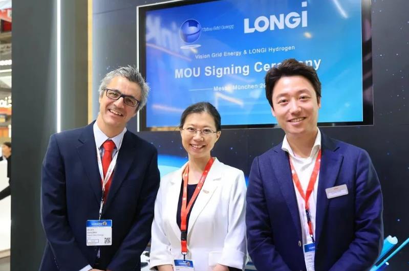 近日,在德國(guó)慕尼黑舉辦的Intersolar Europe 2023展會(huì)現(xiàn)場(chǎng),隆基氫能與行業(yè)領(lǐng)先的創(chuàng)新能源技術(shù)公司Vision Grid Energy簽署戰(zhàn)略合作協(xié)議,雙方將在新能源領(lǐng)域攜手共進(jìn),促進(jìn)綠氫解決方案的優(yōu)化、開(kāi)發(fā)和部署。