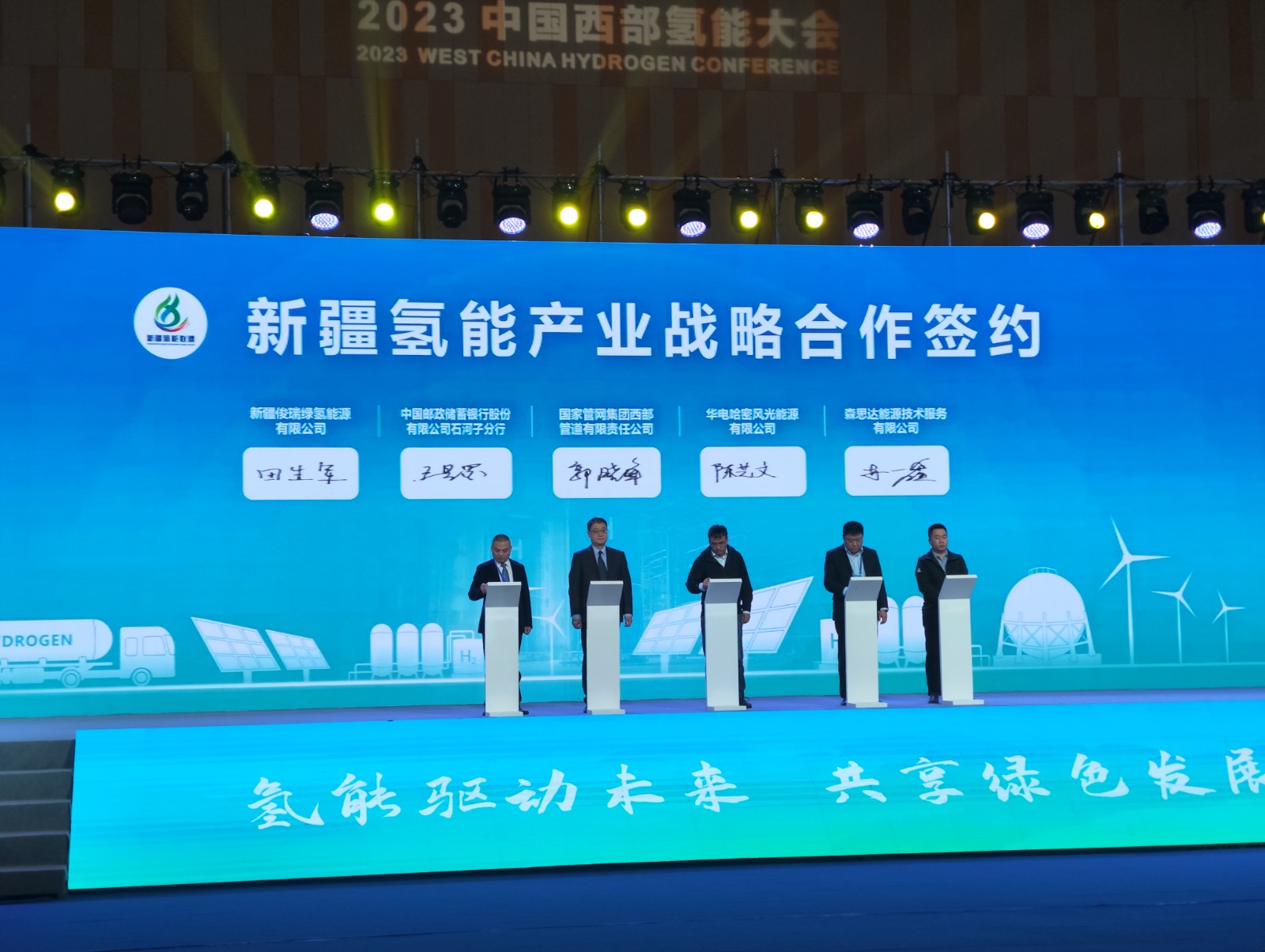 為進(jìn)一步推動(dòng)新疆氫能示范項(xiàng)目的落地實(shí)施,促進(jìn)資源共享、優(yōu)勢(shì)互補(bǔ)、互惠互利、合作共贏,主題演講后,新疆氫能產(chǎn)業(yè)發(fā)展聯(lián)盟與中關(guān)村氫能與燃料電池技術(shù)創(chuàng)新產(chǎn)業(yè)聯(lián)盟、深圳市氫能與燃料電池協(xié)會(huì)簽訂戰(zhàn)略合作協(xié)議;中國(guó)郵政儲(chǔ)蓄銀行股份有限公司石河子分行與新疆俊瑞綠氫能源有限公司簽訂新疆氫能產(chǎn)業(yè)發(fā)展聯(lián)盟會(huì)員單位戰(zhàn)略合作協(xié)議;新疆大學(xué)與新疆能源職業(yè)技術(shù)學(xué)院、新疆俊瑞綠氫能源有限公司與北京匯科伯圖教育科技有限公司簽訂產(chǎn)教融合共同體協(xié)議。