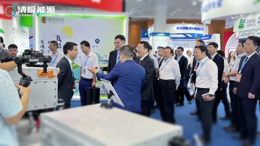 開展首日,廣東省常務副省長張虎等一行領導蒞臨清極能源品牌展館C04-13展位交流指導,清極能源董事長兼總經理錢偉為一行領導做詳細介紹,各位領導對清極能源當前組建的可滿足乘用車、商用車全系列車型的需求,實現全功率、全系車、全場景、全覆蓋的燃料電池電堆及動力系統產品矩陣表示肯定。