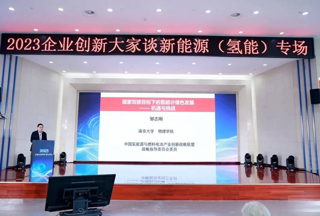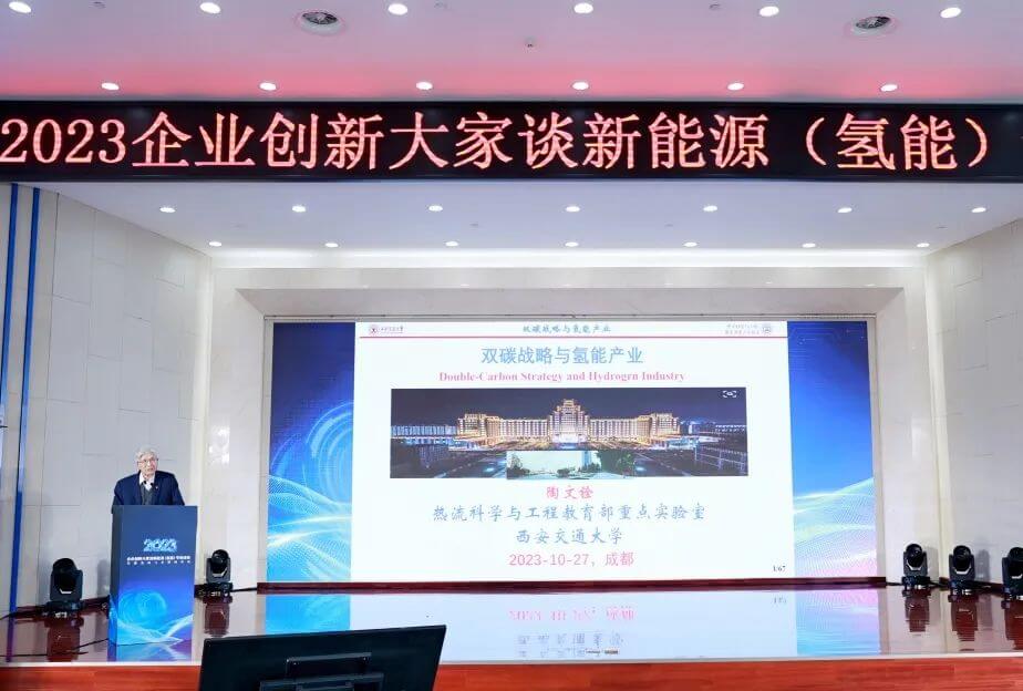 中國科學院院士、西安交通大學能源與動力工程學院教授陶文銓以《雙碳戰略與氫能產業》為題,圍繞我國雙碳戰略,介紹了氫能產業的發展現狀和方向;中國科學院院士、南京大學物理學院教授鄒志剛以《國家雙碳目標下的氫能源發展——機遇與挑戰》為題,分析了國家雙碳目標下的氫能產業的機遇與挑戰;東方電氣(成都)氫燃料電池科技有限公司黨委副書記、總經理黃果以《東方電氣氫能產業布局及實踐》為題,從企業發展的角度,介紹了東方電氣在氫能領域的布局和實踐。