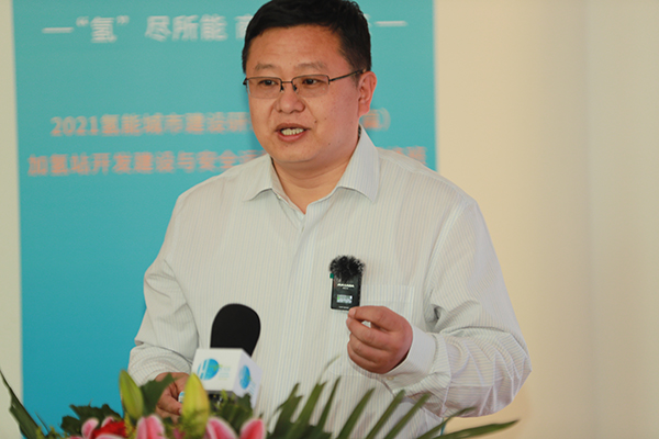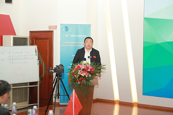 授課環(huán)節(jié),北京市城市管理委員會左磊博士首先做了“北京市加氫站規(guī)劃建設(shè)運(yùn)營管理基本情況”的主旨發(fā)言,他從加氫站建設(shè)背景、發(fā)展?fàn)顩r、發(fā)展規(guī)劃、政策要求等方面進(jìn)行了講解,并重點(diǎn)介紹了油氫合建站審批流程。