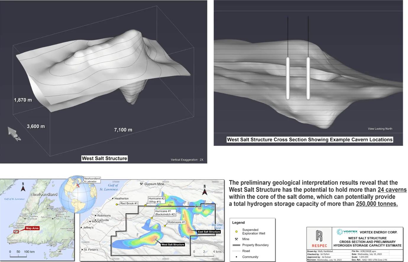 Vortex Energy為羅賓遜河鹽業項目開發任何鹽洞都將取決于當地的地質情況和鹽層的厚度。Vortex的首席執行官Paul Sparkes表示:“respec的初步結果非常有希望。如果評估的結果是準確,該項目有可能儲存大量氫氣,最終可能成為加拿大東海岸最大的鹽洞之一。”