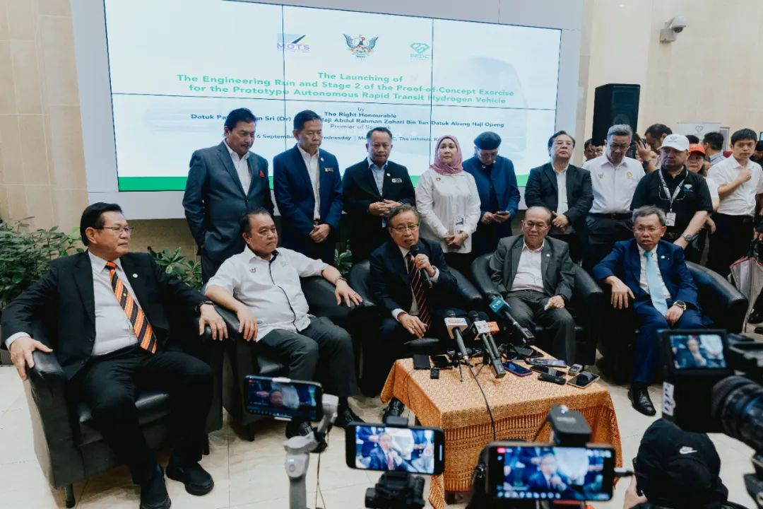砂拉越州總理阿邦佐·哈里出席儀式,并現(xiàn)場試乘體驗(yàn)了智軌,他表示,一直以來砂拉越州政府都重點(diǎn)支持發(fā)展公共交通以解決城市交通擁堵問題,呼吁市民培養(yǎng)乘坐公共交通的出行習(xí)慣,此次采用的氫能智軌車輛高度契合古晉的城市發(fā)展需求與規(guī)劃。他透露,砂拉越州政府已向中國中車訂購了38列智軌,在試跑結(jié)束后,這些車將分批次從中國交付抵達(dá),并投入使用覆蓋古晉的三條線路。他還表示,州政府將進(jìn)一步加大新能源相關(guān)設(shè)備及交通設(shè)施的投入與建設(shè)。