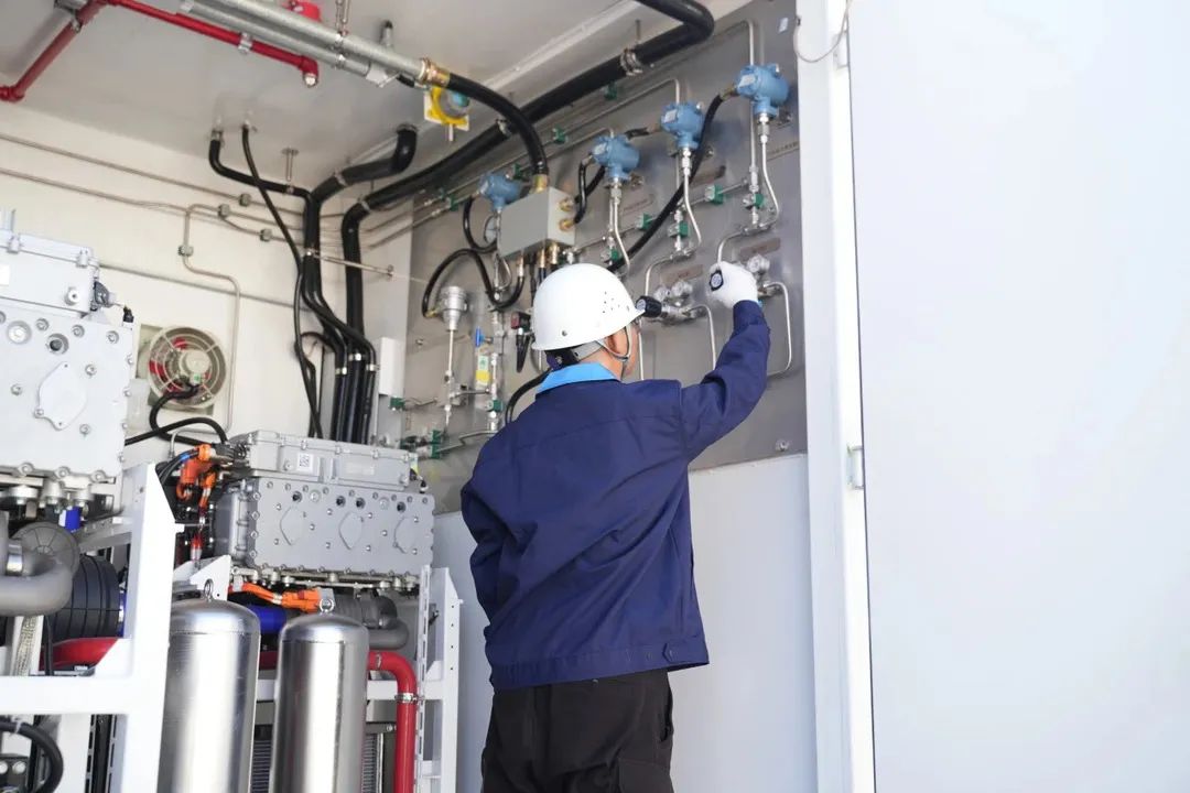 捷氫科技氫發(fā)電產(chǎn)品開發(fā)團隊經(jīng)過近2個月的協(xié)力奮戰(zhàn),圓滿完成調(diào)試工作,保障固定式發(fā)電站充分適應(yīng)鄂爾多斯海拔及氣候等復(fù)雜環(huán)境,實現(xiàn)熱電聯(lián)供高效利用。發(fā)電站產(chǎn)生的電能可向附近配套充電樁提供新能源充/換電重卡和新能源乘用車充電服務(wù),產(chǎn)生的熱能可為站內(nèi)辦公場所提供生活用熱水。