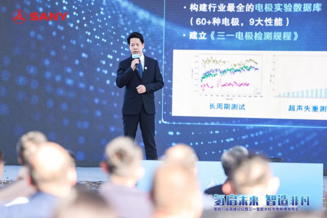 三一氫能總經(jīng)理饒洪宇詳細(xì)講解了三一GW級(jí)綠電制氫整體解決方案,該方案依托三一氫能S系列全新產(chǎn)品占地面積小、模塊化設(shè)計(jì)、高電密、能帶壓運(yùn)行等核心優(yōu)勢(shì),為綠色氫能的規(guī)模化生產(chǎn)和應(yīng)用提供了全新路徑。