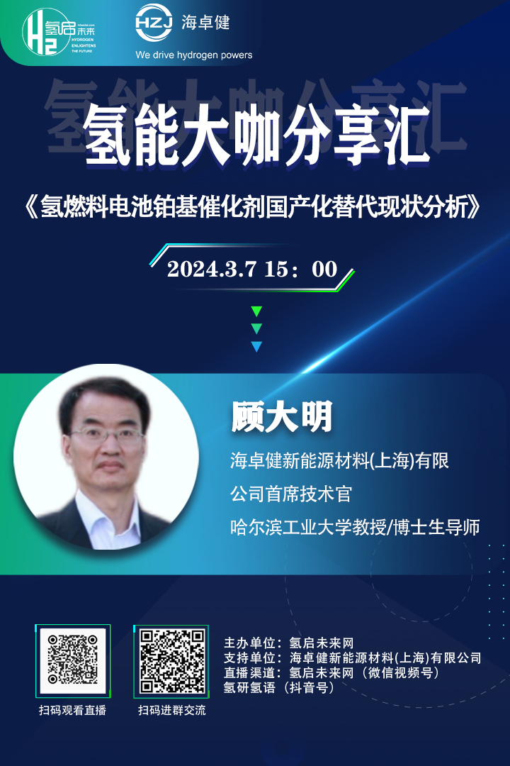 本次氫能大咖分享匯將邀請(qǐng)海卓健新能源材料(上海)有限公司首席技術(shù)官、哈爾濱工業(yè)大學(xué)教授/博士生導(dǎo)師顧大明,進(jìn)行《氫燃料電池鉑基催化劑國(guó)產(chǎn)化替代現(xiàn)狀分析》主題分享。