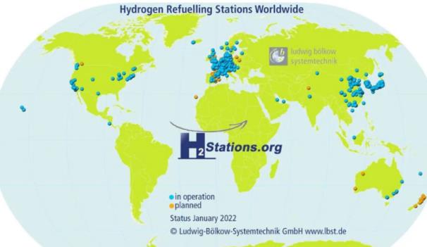 在全球范圍內(nèi),2021年底,全球有685個(gè)氫加氣站投入運(yùn)營(yíng),并制定了具體計(jì)劃,將這一數(shù)量再擴(kuò)大到252個(gè)。