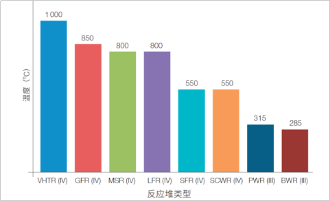 不同反應(yīng)堆技術(shù)的出口溫度
