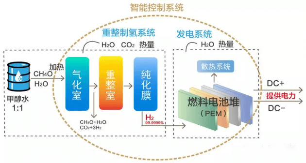 安全性方面,相比氣態氫,甲醇在常溫下為液態,更加穩定、安全,便于運輸。且系統無高溫高壓,運行更加安全可靠。