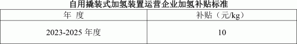 為加快推動(dòng)多種商業(yè)化場(chǎng)景應(yīng)用,解決車輛加氫不便問題,對(duì)具有自營(yíng)業(yè)務(wù),同時(shí)符合相關(guān)安全技術(shù)規(guī)范并完成審批流程的自用撬裝式加氫裝置,按以下總額上限給予運(yùn)營(yíng)企業(yè)加氫補(bǔ)貼: