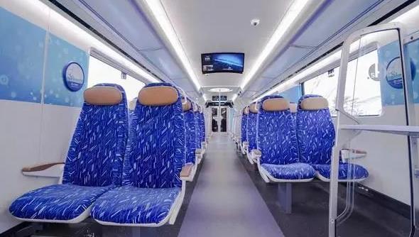 另外,第一次采用5G大容量車地通訊,實現車地信息傳輸的多網融合,用大數據分析技術對列車運行狀態進行評估,確保行車安全。在智能交互方面,應用OLED車窗、雙曲面屏、超薄屏等智能化乘客信息顯示技術,實現視頻直播觀看、出行信息查詢;采用智能照明系統,可根據車外環境自動調節亮度及色溫,提高乘坐體驗。