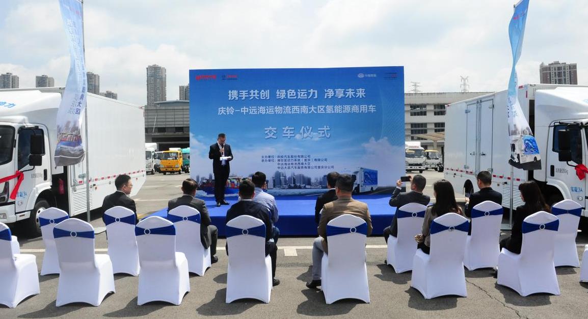 4月25日,慶鈴汽車與中遠海運物流西南大區首批10輛氫燃料電池汽車交付儀式在慶鈴舉行。