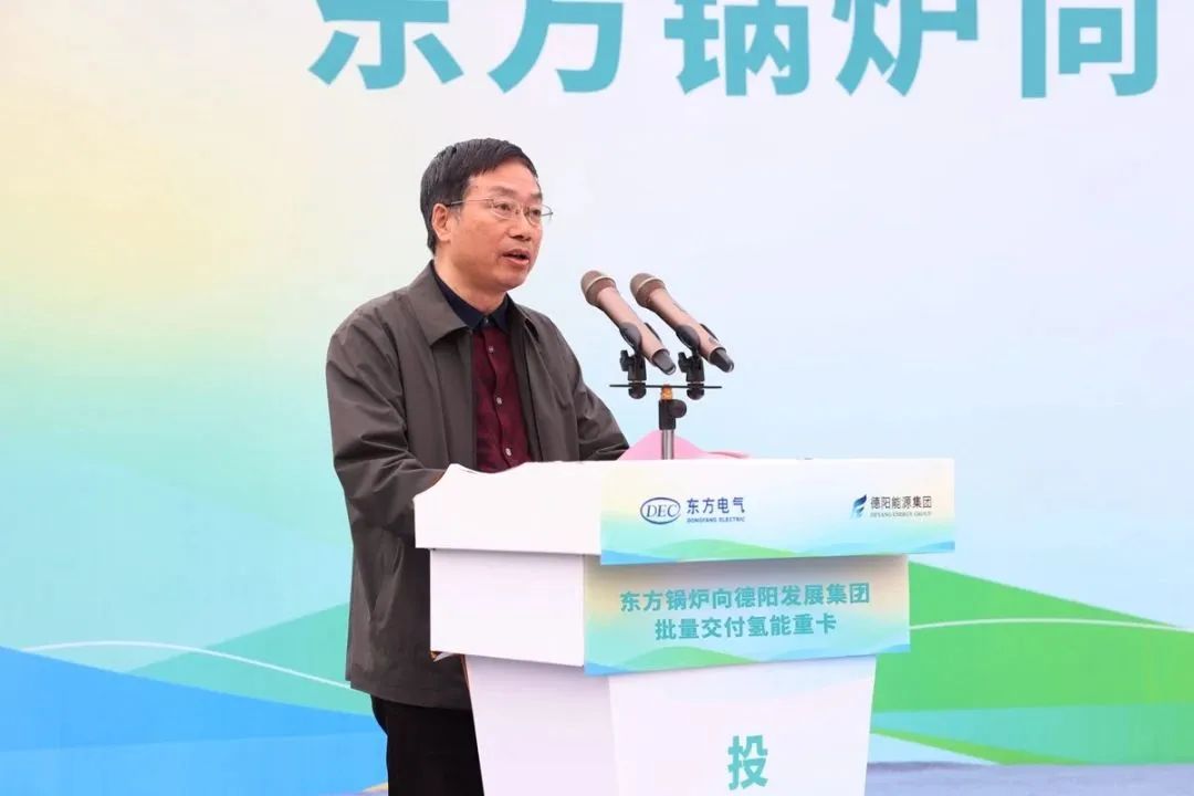 林光平在致辭中指出,此次向德陽發展集團批量交付氫能重卡,是德陽市和東方鍋爐貫徹習近平總書記視察四川時做出的“水風光氫協同發展”的重要指示精神的具體體現,是德陽市委市政府大力支持東方鍋爐氫能裝備技術在德陽推廣示范應用的具體行動。本次東方鍋爐向德陽發展集團批量交付的氫能重卡,體現了德陽市委市政府和德陽發展集團對東方鍋爐氫能技術與裝備的高度認可,是德陽推進氫能先進技術與裝備應用拓展的重要里程碑。東方鍋爐深耕氫能10余年,掌握了氫獲取、氫儲存、氫加注、氫應用全產業鏈技術,在德陽基地建成了全球第一個氫能全產業技術應用示范園。東方鍋爐將在德陽市委市政府的支持下,加強與氫能產業鏈企業協同發展,努力為德陽建設世界級清潔能源裝備制造基地建設貢獻東方鍋爐的智慧與力量。