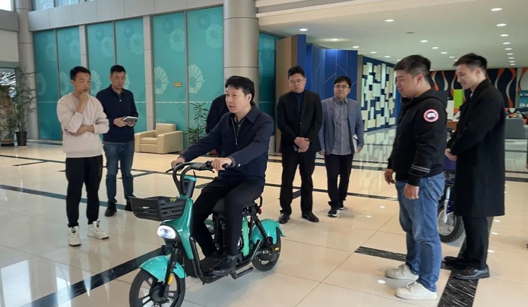 參訪交流期間,王強總向來訪領導們重點介紹了滿電未來的發展歷程、業務板塊,杜副市長更是饒有興致地親自騎行體驗了滿電未來氫動力兩輪車。雙方就打造零碳城市產業投資需求意向,尤其是對氫能車研發生產基地建設及投放計劃做了深入交流。