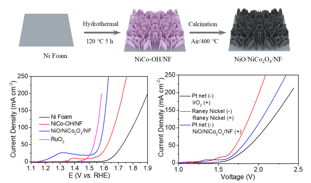 (NiO/NiCo2O4合成路線及其電催化析氧性能和全解水性能)