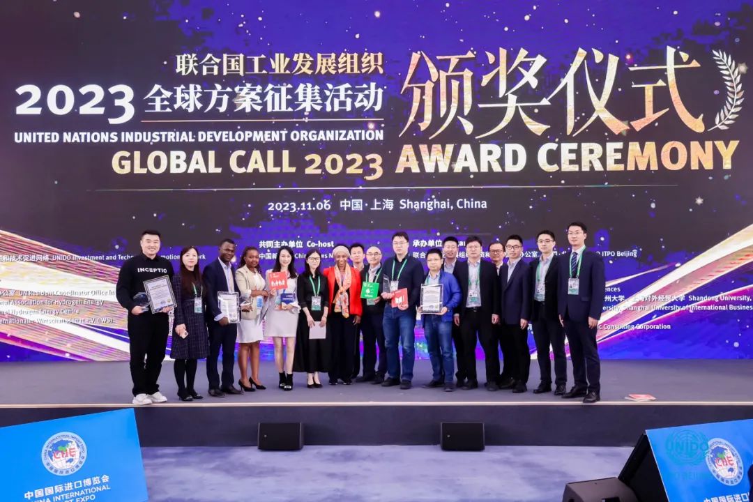 11月6日,由聯(lián)合國工業(yè)發(fā)展組織(以下簡稱“UNIDO”)中國國際進(jìn)口博覽局、國家會展中心(上海)、中國新聞網(wǎng)共同主辦的Global Call 2023全球方案征集活動的頒獎儀式在上海進(jìn)博會隆重舉行。商務(wù)部黨組成員、副部長盛秋平,聯(lián)合國工業(yè)發(fā)展組織副總干事Fatou Haidara,上海市人民政府副秘書長章雄,中國新聞社總編輯張明新致歡迎詞,隆基氫能受邀參加頒獎儀式并做路演。