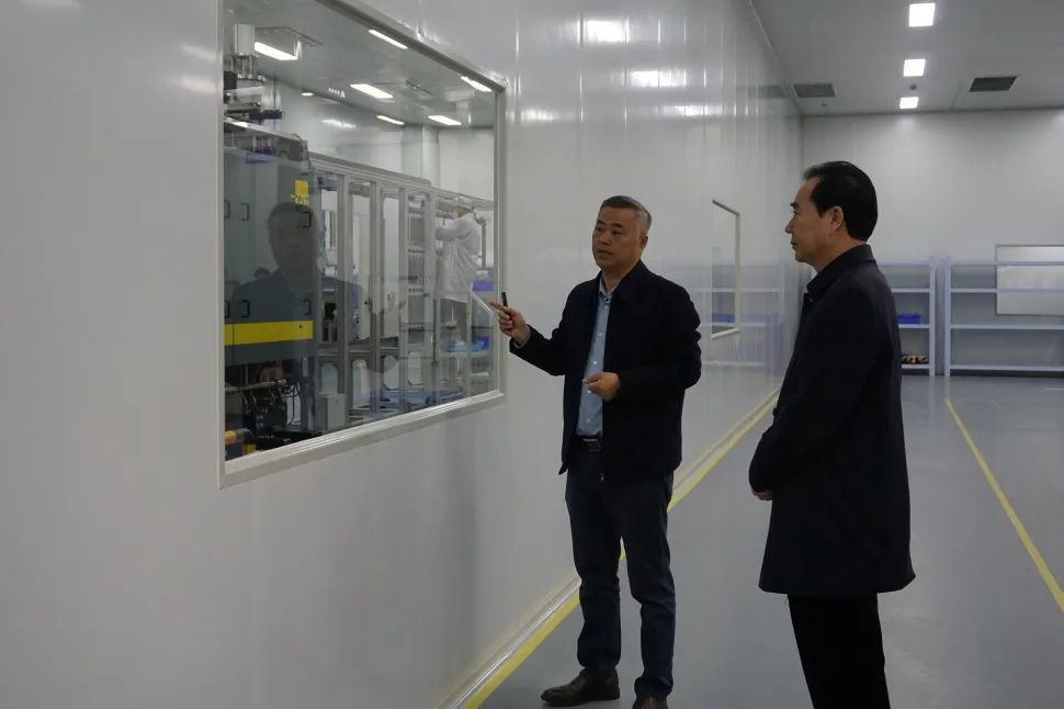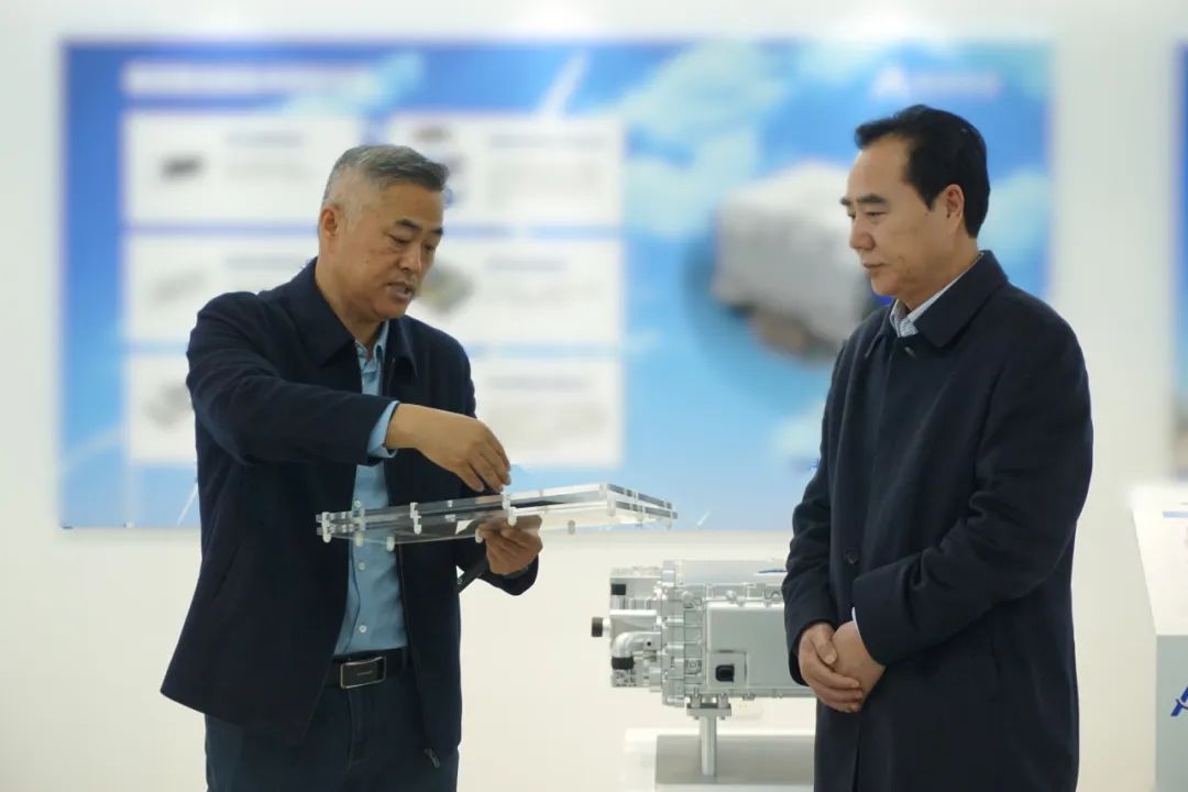 公司董事長梁鐵強攜各業(yè)務板塊負責人陪同崔院長先后參觀了公司展廳、性能檢測實驗室、集成測試車間、燃料電池系統(tǒng)產線、金屬雙極板涂層線及清洗線等產線裝備。