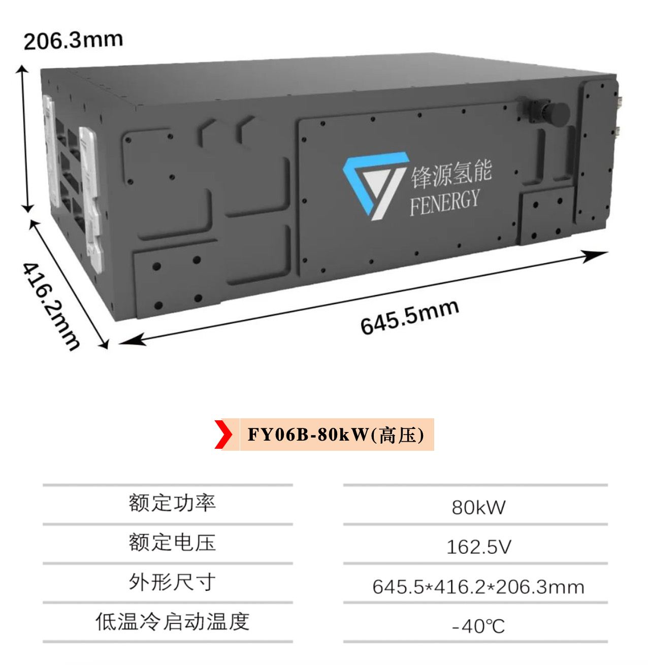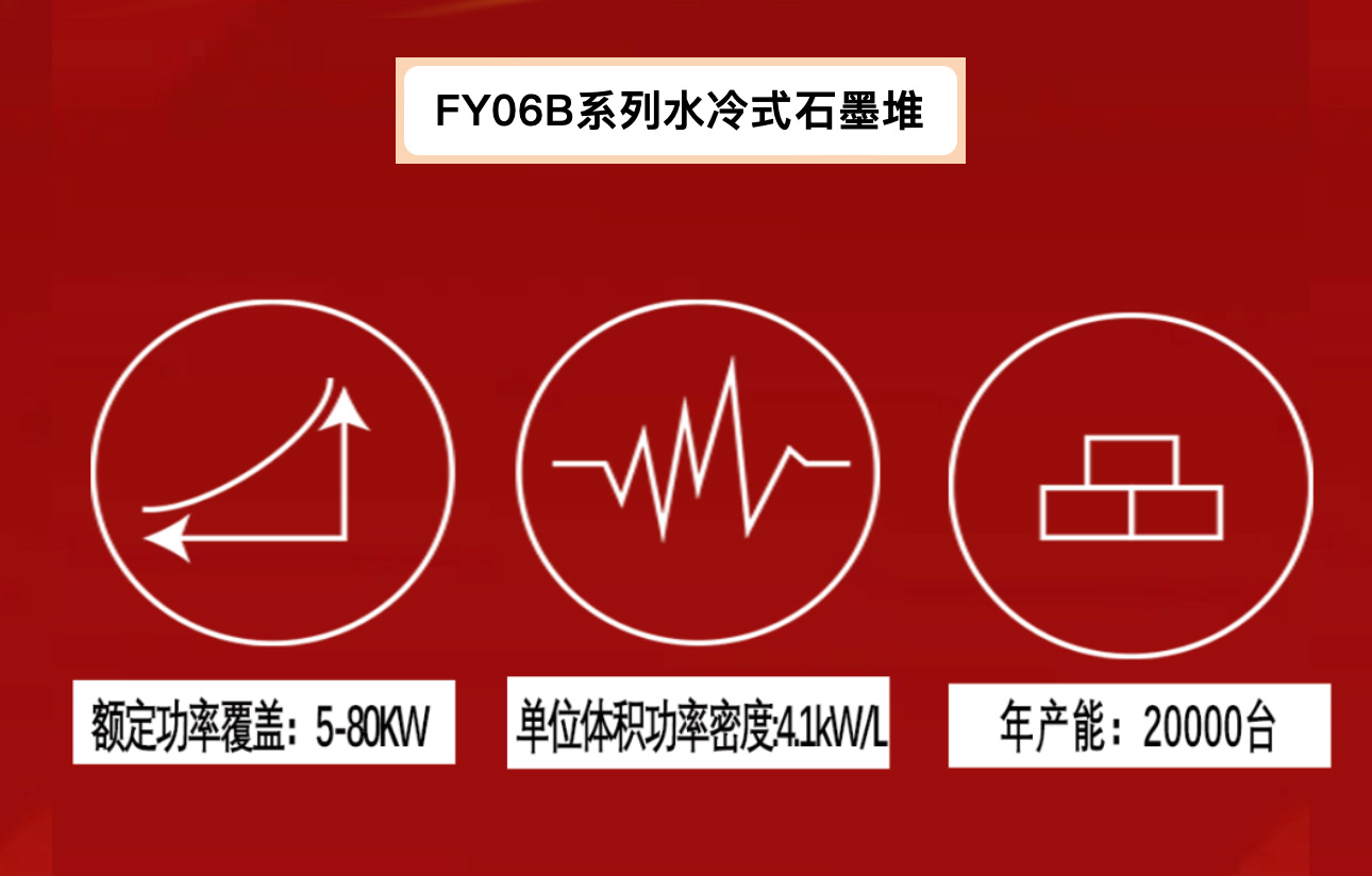 鋒源氫能推出的FY06B系列燃料電池水冷式石墨堆,是一款功率范圍覆蓋5~80kW的小功率電堆,主要適用于叉車、生活園區(qū)等較小的交通及發(fā)電場景。由鋒源氫能自主研發(fā)設(shè)計,經(jīng)過多次實驗分析,本款產(chǎn)品在結(jié)構(gòu)設(shè)計上,繼承了FY06系列石墨堆的特性,又因其體積小的特征,在不同產(chǎn)品應(yīng)用場景的空間中表現(xiàn)出優(yōu)良的適配性。
