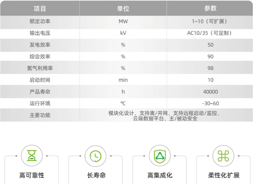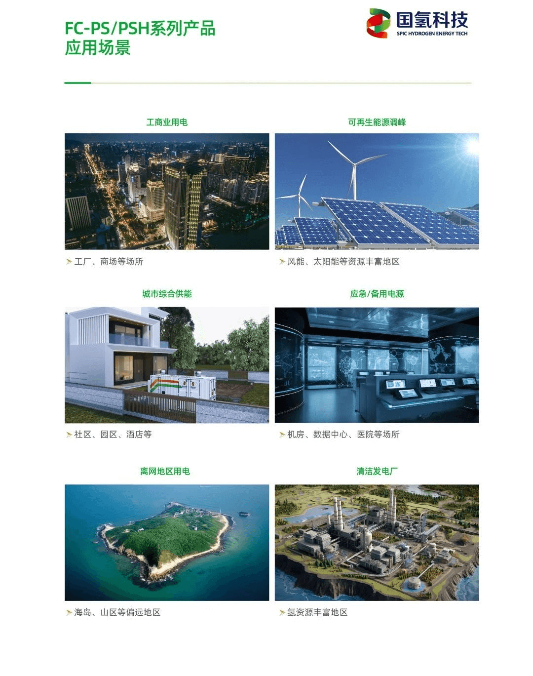 國氫科技自主研發的“氫騰”FC-PS/PSH發電系列產品,核心部件全部自主化,具有低成本、高可靠、長壽命等特點,適用于社區、工業園區、商業樓宇、數據中心用能及可再生能源調峰等場景。