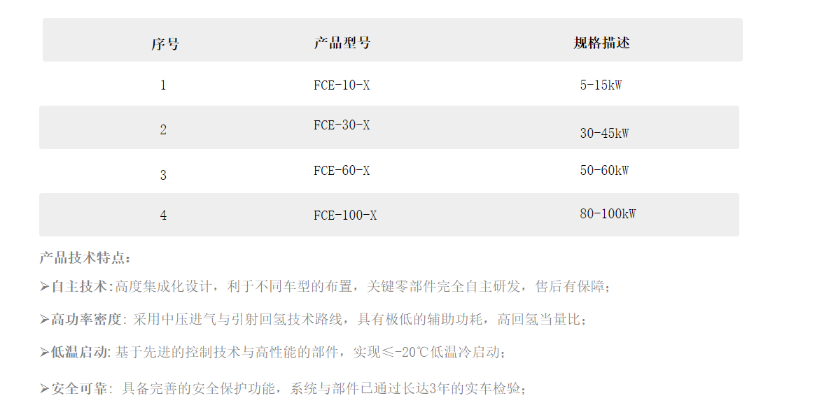 氫燃料電池發動機產品覆蓋5-100kW功率范圍,低壓與中壓兩大系統。同時提供動力機車與大型發電系統千、兆瓦級大功率定制產品